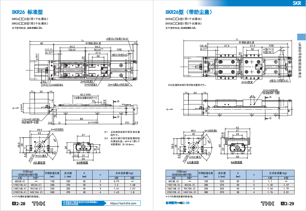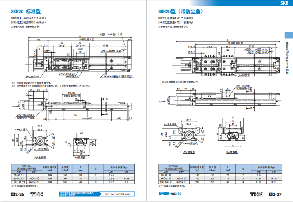 球保持器型LM智能组合单元SKR型为小型的智能组合单元,在其U形断面形状的外侧轨道的内侧,装有由LM滑块和螺母结合为一体而成的内滑块。 另外,在LM滚动导轨部和滚珠丝杠部采用球保持器,与传统的KR型相比,可以实现高速性、低噪音和长期免维护等。(SKR20、26型仅在LM滚动导轨部采用球保持器,在滚珠丝杠部安装了润滑装置QZ)